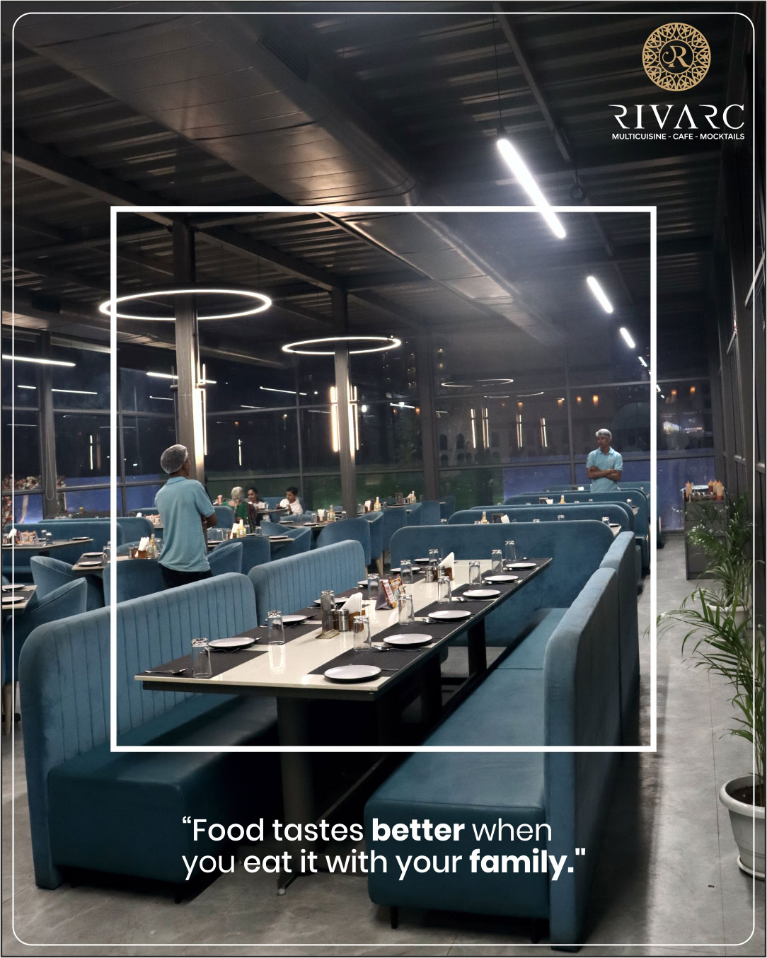 Designed to suit every occasion, Rivarc offers a thoughtfully curated dining environment featuring a sophisticated air-conditioned indoor hall, an atmospheric rooftop dining area, and an expansive garden venue — perfect for private celebrations, social gatherings, and bespoke events.